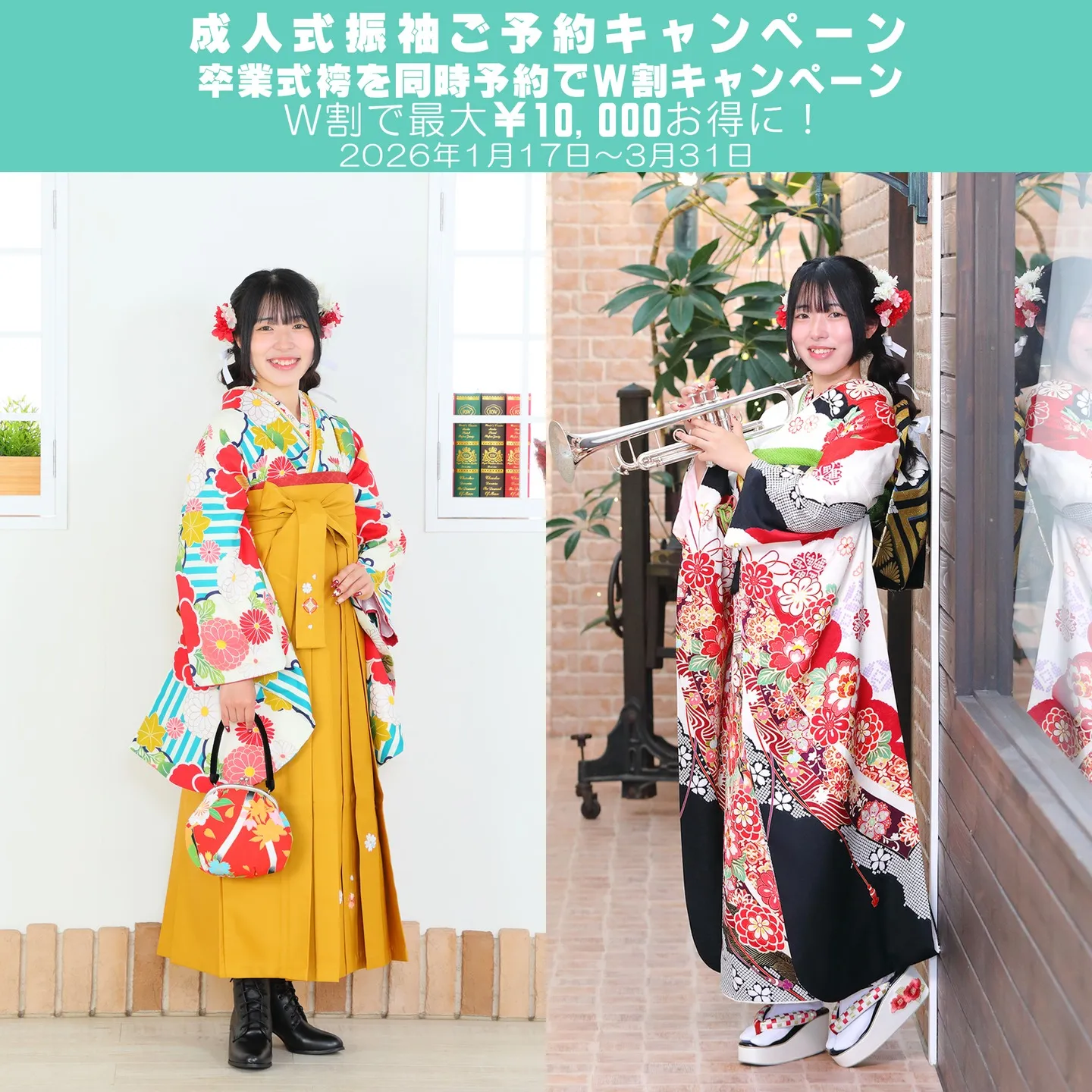 『成人式振袖ご予約キャンペーン』&卒業式の袴を一緒に予約でお得『W割キャンペーン』同時開催